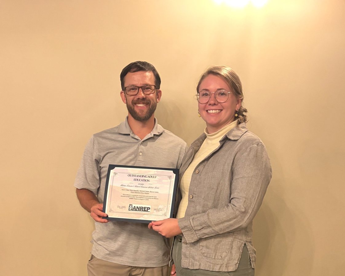 The Alabama Association of Natural Resources Extension Professionals recently honored several Alabama Extension professionals and partners for their contributions this past year. AL ANREP is a small but growing chapter with participation from Extension colleagues across numerous program teams conducting natural resource-related work. At the organization’s annual conference — held Aug. 14-15 in Anniston, Alabama — special recognitions for outstanding Extension work was awarded to the following teams and individuals: