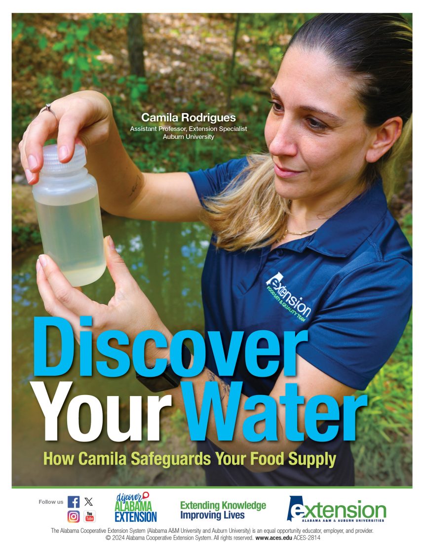 Camila’s work with the AgWater Safety Program is just one of the many ways to discover your water. Whether managing a private well or learning how to be a better steward of water resources, an Alabama Extension educator in your area is working to find practical solutions, provide opportunities, and empower people. Discover more at www.aces.edu/discover.