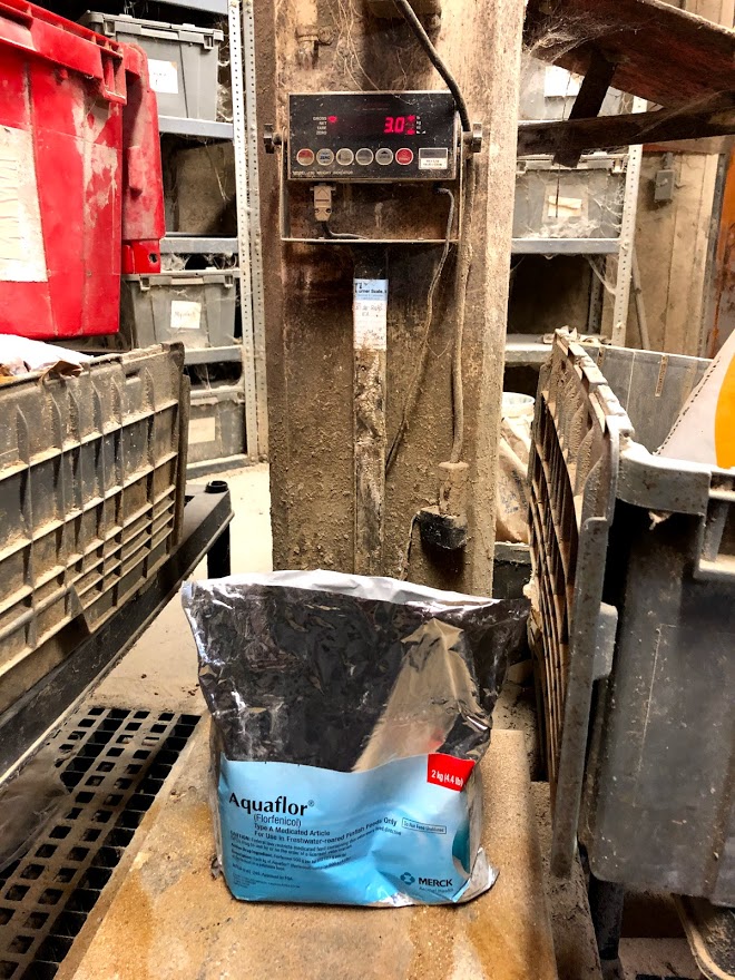 - Figure 3. Antibiotics are weighed out at the feed mill prior to adding to commercial catfish feeds.