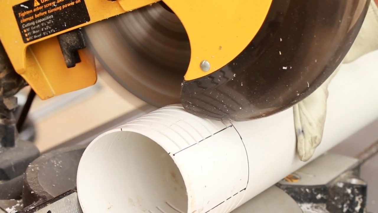 - Measure 4 inches up from one end of the pipe and draw a line around the pipe.