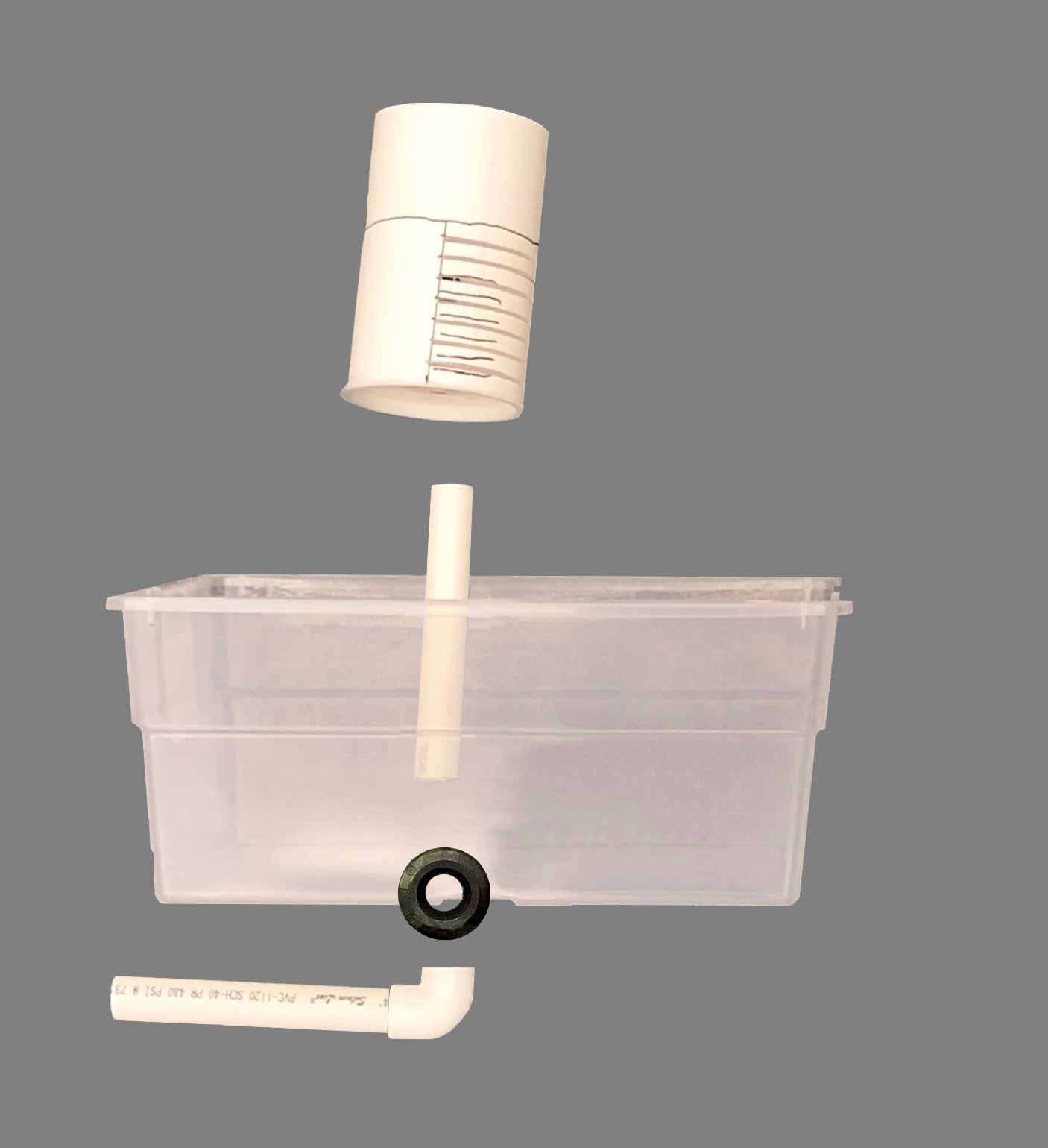 - Connect the vertical pipe and horizontal pipe with the two remaining 1⁄2-inch elbows. The lengths of these pipes will vary depending on the placement of your culture tank and filter assembly.
