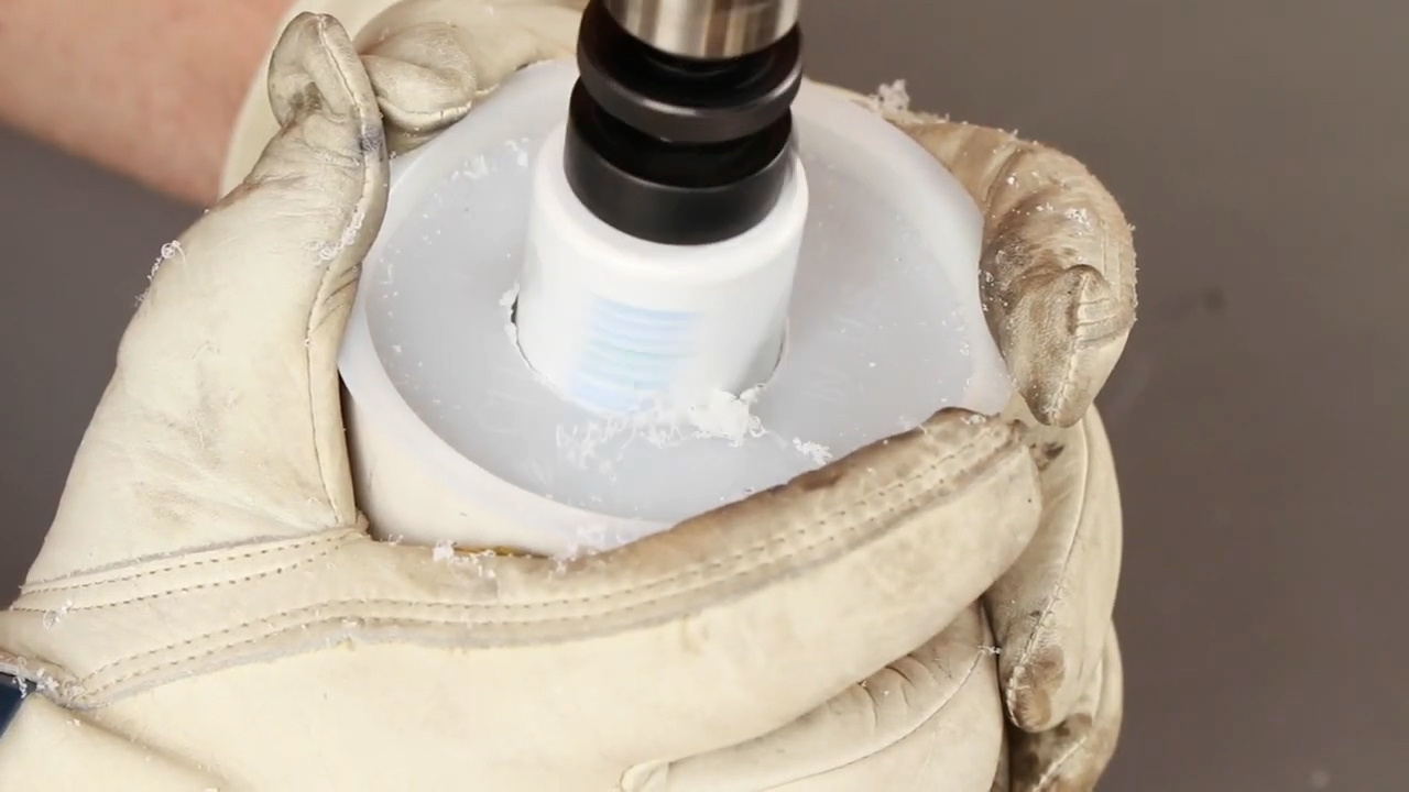 - Carefully hold the 4-inch flat cap and drill a 1 1⁄4 hole in the middle using a hole saw. Attach the cap to the 4-inch pipe on the end with the slits using silicone.