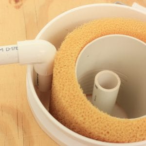 - Attach the short 2-inch piece of pipe downward to help secure the contact with the 1-gallon bucket filter.