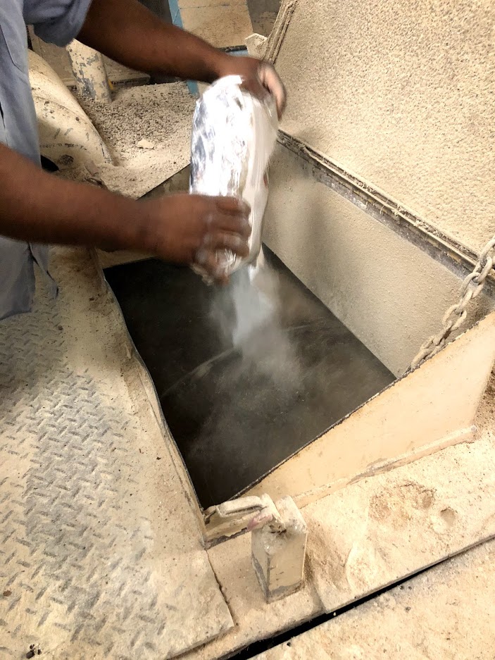 - Figure 1. Adding the antibiotic to the mixer to ensure that it is equally distributed throughout the feed.