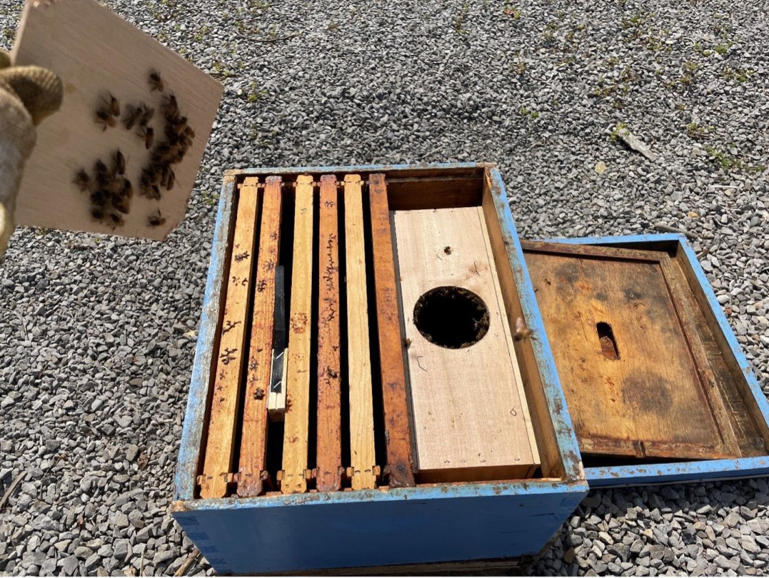 - Add an entrance feeder with light syrup if more honey stores are needed for survival.