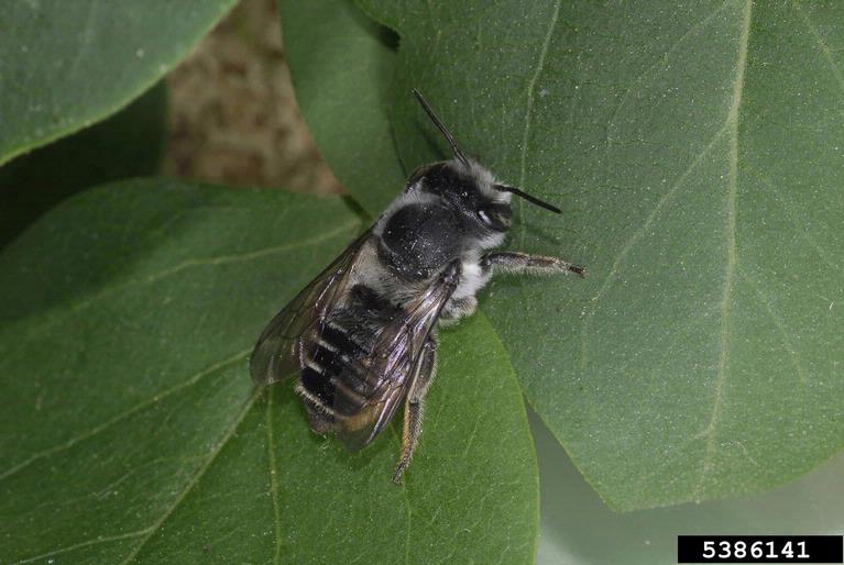 - Figure 11. Leaf cutter bees are black and hairy but often go unnoticed. (Photo credit: Joseph Berger, Bugwood.org)
