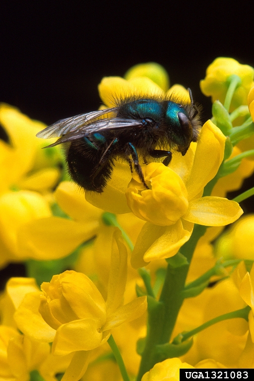 - Figure 10. Mason bees are also known as the genus Osmia. They are important native pollinators. (Photo credit: Jack Dykinga, USDA ARS, Bugwood.org)
