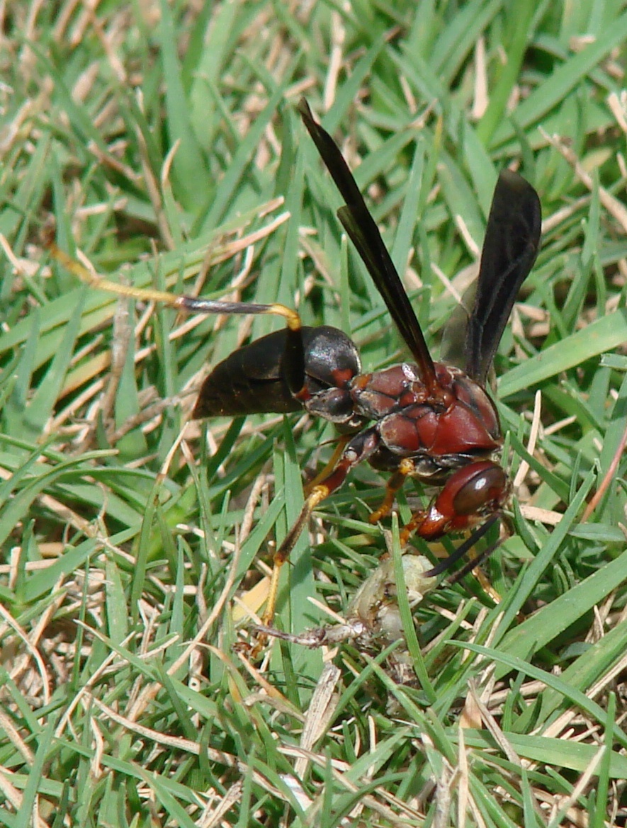 - Figure 4. Wasps are beneficial insects also seen on flowers. They lack hairs on their bodies, which makes them ineffective as pollinators. (Photo credit: C. Abraham)