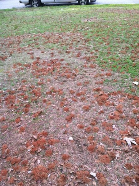 - Figure 9. Many mining bees nest in the ground. Large numbers of single holes can occur in bare places in the lawn. Damage is often secondary to concerns over the swarms of male bees in these areas. (Photo credit: James Bartley)