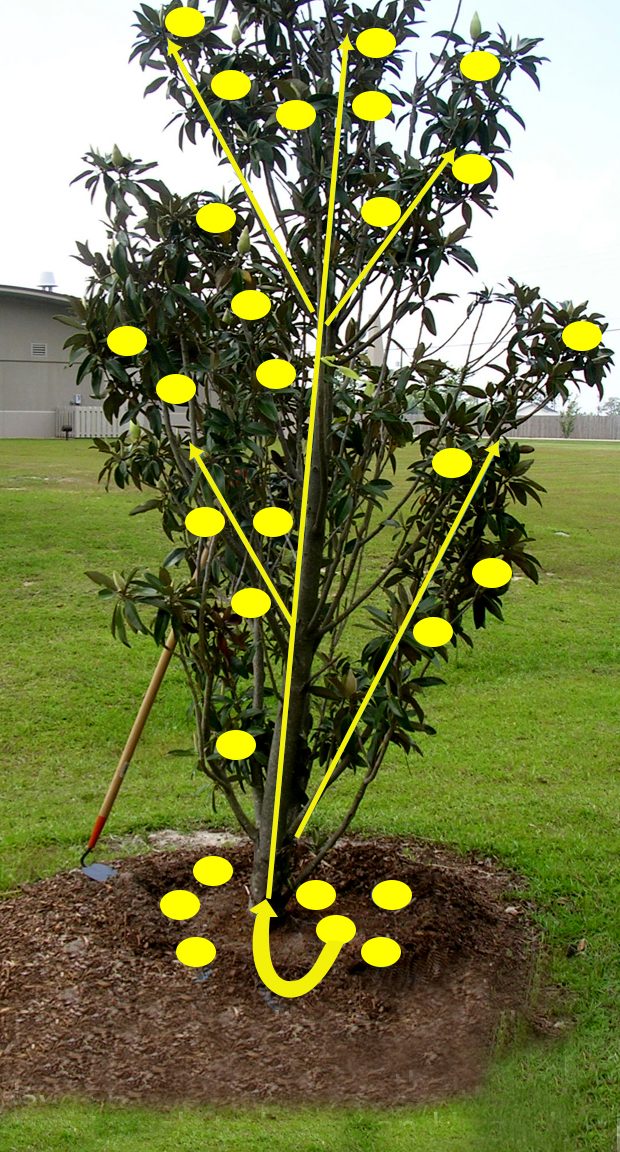 - Figure 2. Insecticide applied to the soil or leaves moves into the plant sap and travels to leaves and branches.