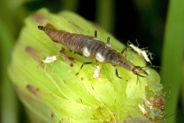 - Figure 14. Lacewing larvae have sickle-shaped mandibles to impale and kill lace bugs.(Photo credit: David Cappaert, Bugwood.org)