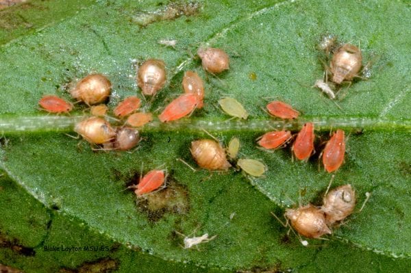 - Figure 5. In checking for natural enemies, look for brown husks called mummies. These are aphids that have been attacked by tiny wasps.