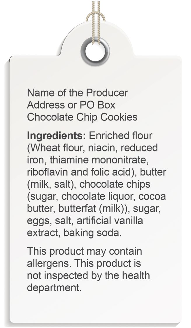Note: Every package must have a label. Health claims fall under Food and Drug Administration (FDA) regulations and are not covered under the Cottage Food Law.