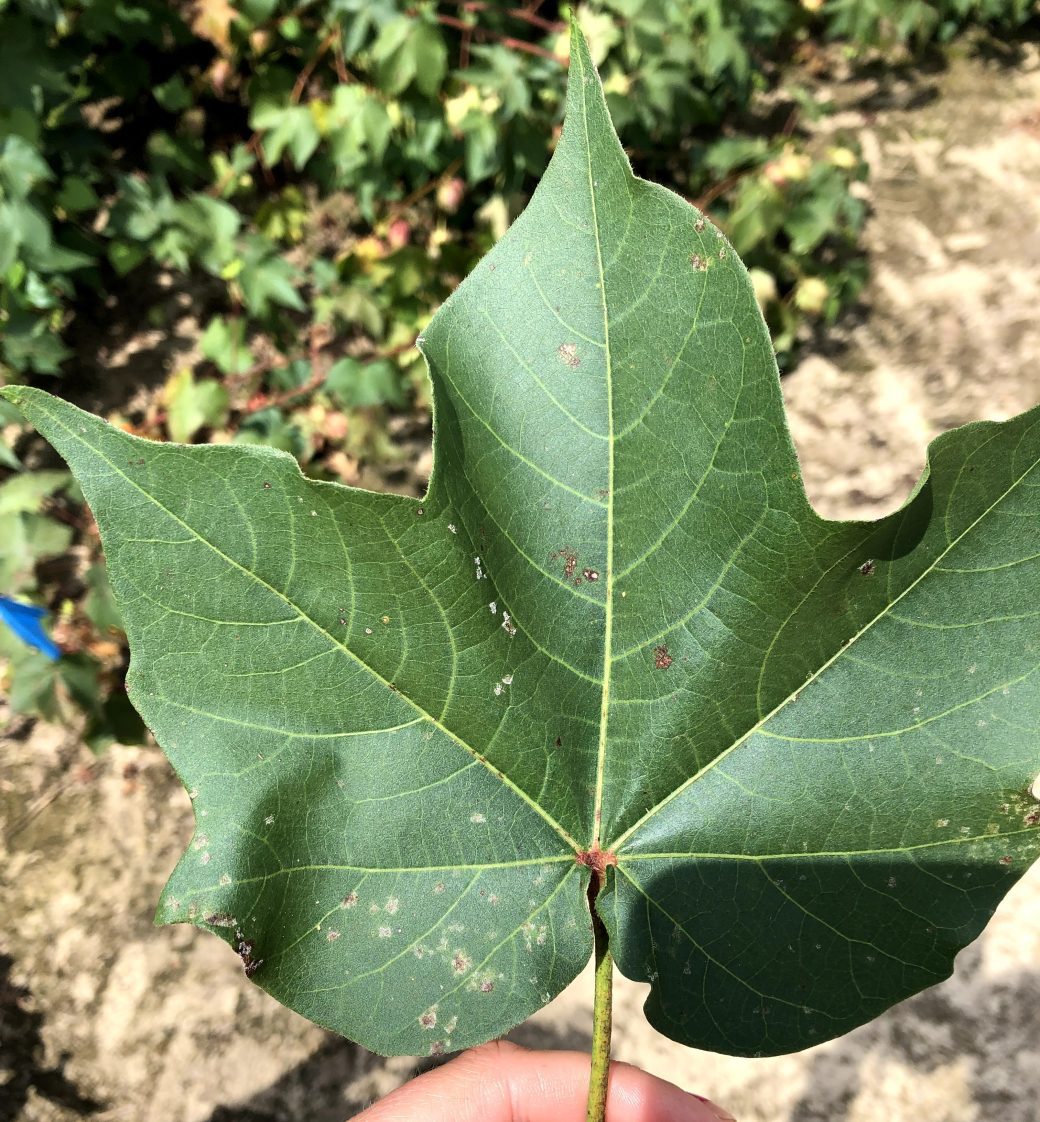 Figure 4. Cotton leaves with symptoms of both areolate mildew and Stemphylium leaf spot.
