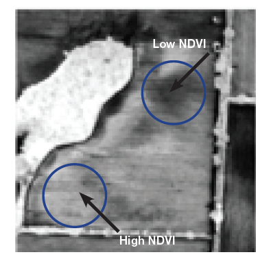 - Figure 5b. Vegetation index (NDVI) image differentiating biomass differences