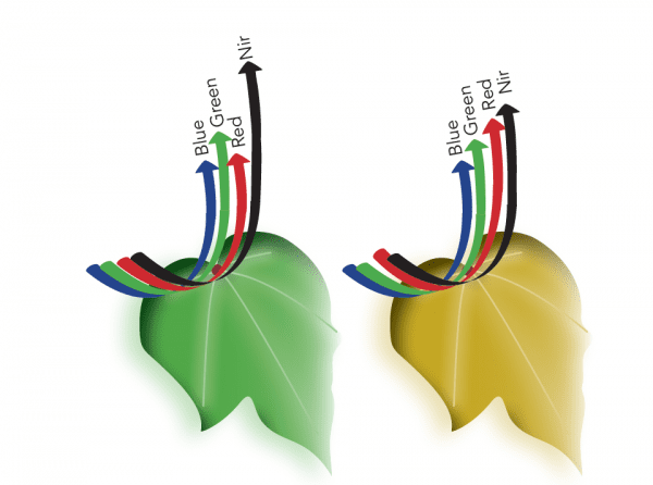 - Figure 3a. Differences in reflected light between a healthy and unhealthy leaf.
