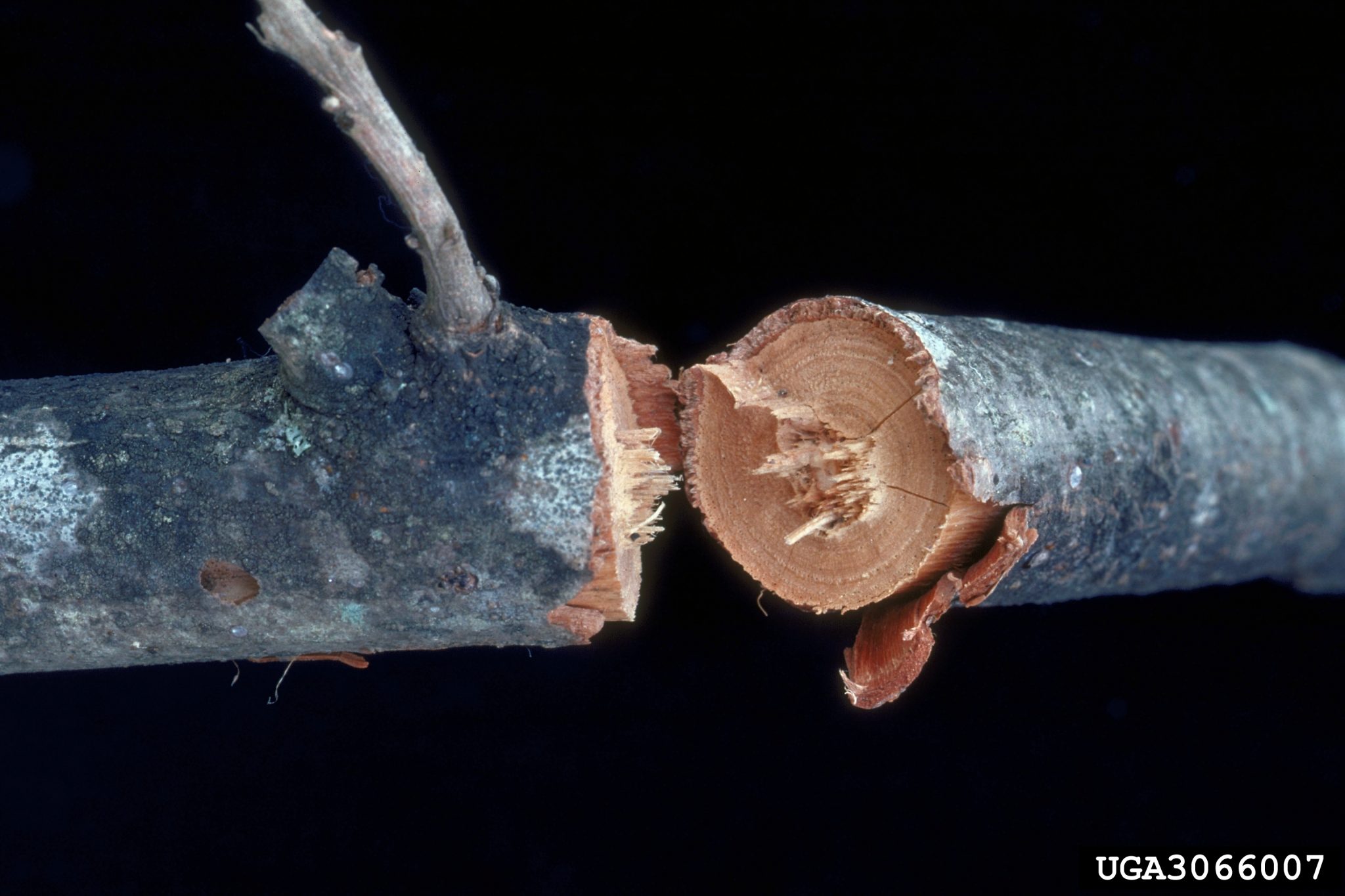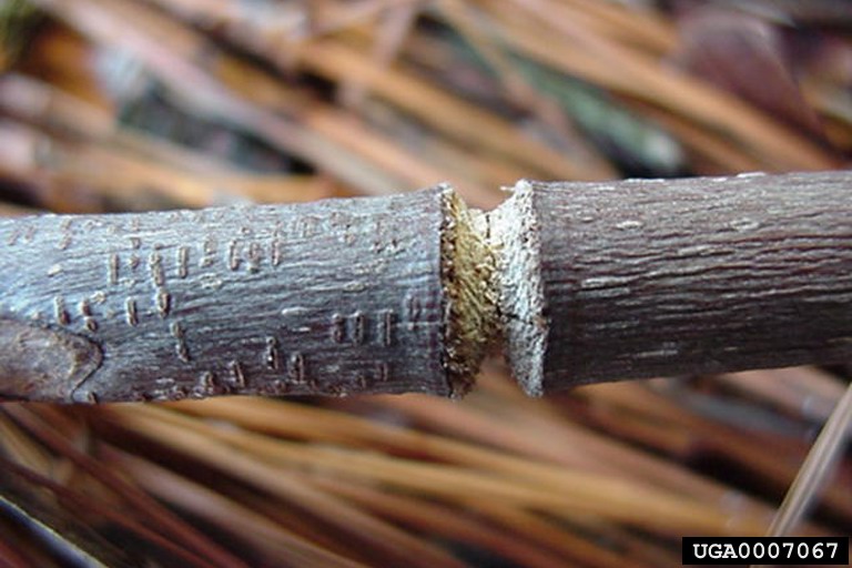 - Figure 10. Damage from a twig girdler. (Photo credit: Herbert A. ‘Joe’ Pase III, Texas A&M Forest Service, Bugwood.org)