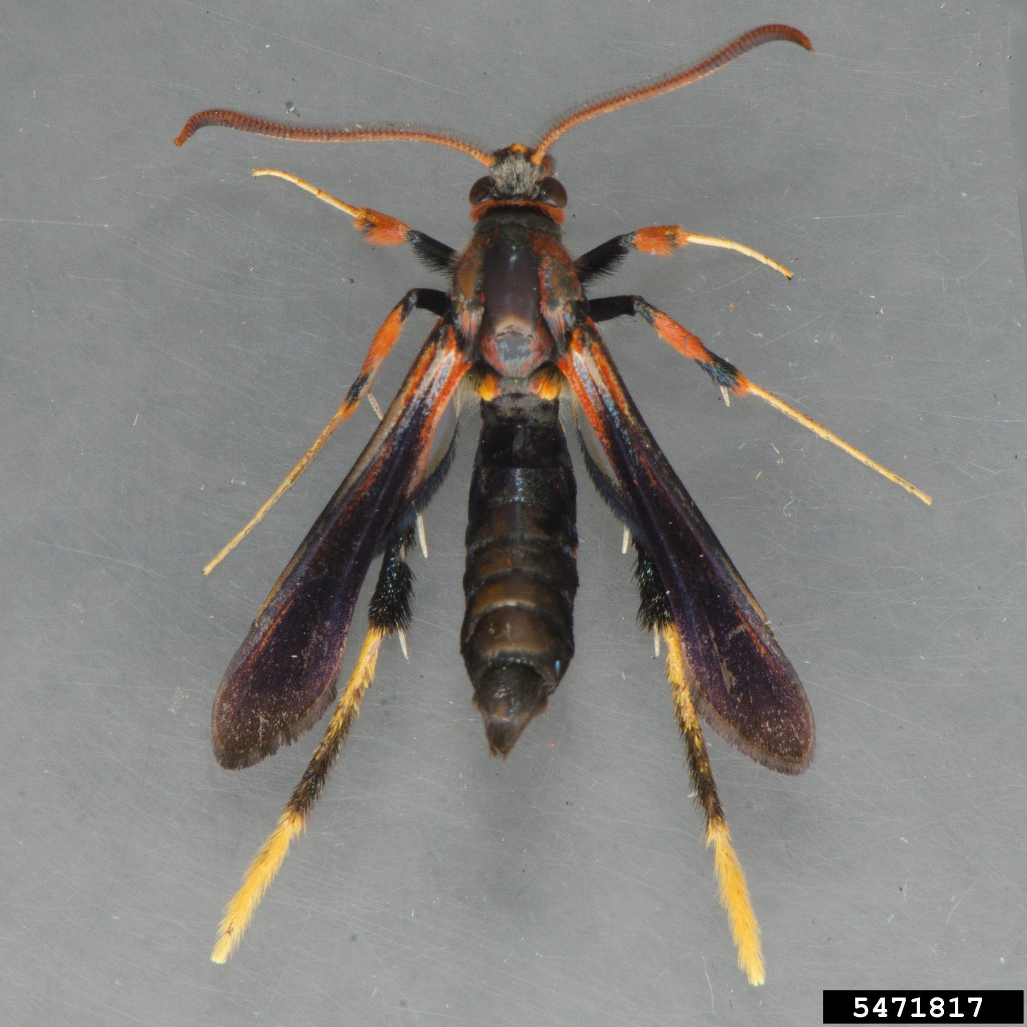 - Figure 18. Clearwing moths resemble wasps. This species, the ash clearwing borer, could be mistaken for a paper wasp or red wasp. (Photo credit: Mark Dreiling, Bugwood.org)