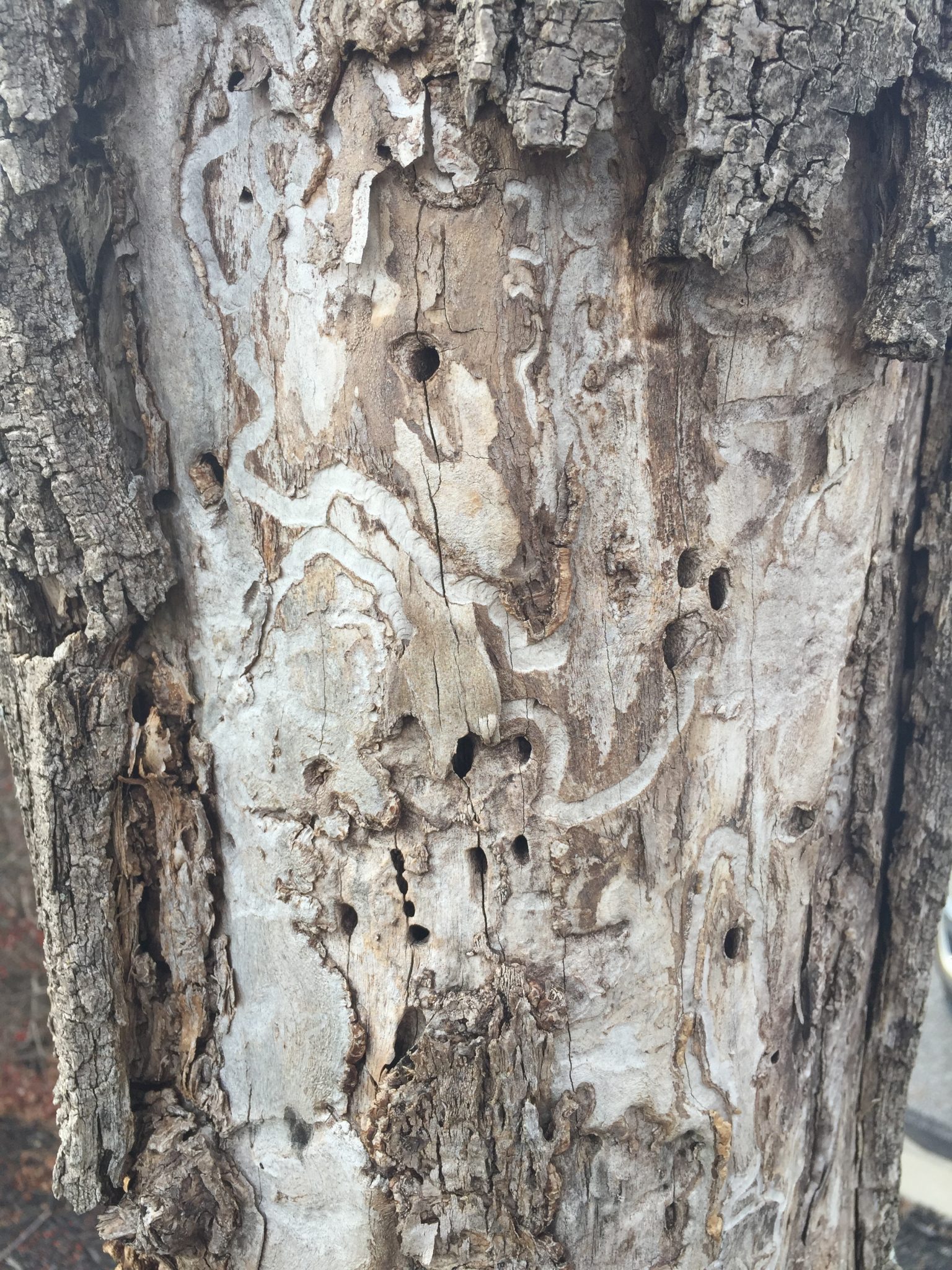 - Figure 2. Galleries are trails created inside a plant where borers feed and develop. The appearance of galleries can be diagnostic. The galleries shown here, made by the emerald ash borer, are S shaped.