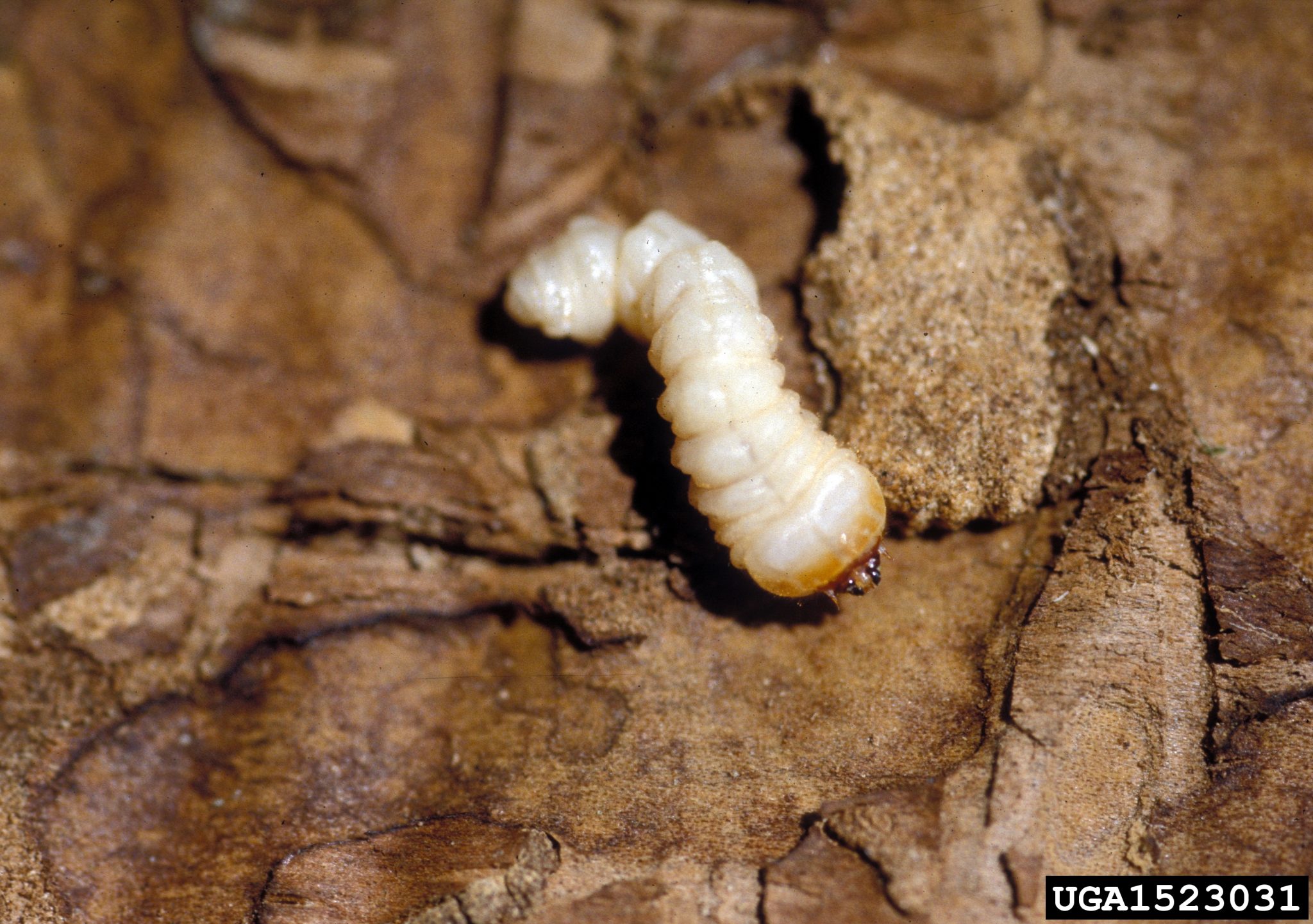 - Figure 6. Redheaded ash borer larvae is an example of a roundheaded borer. (Photo credit: Daniel Herms, The Ohio State University, Bugwood.org)