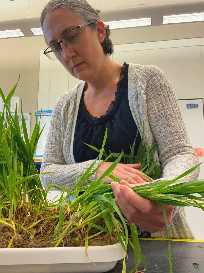 - Figure 1. Kassie Conner examines specimens in the Auburn University Plant Diagnostic Lab.