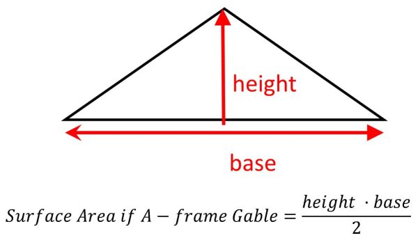 Figure 10. Formula for surface area of A-frame style gable.