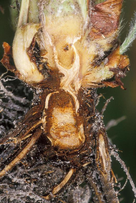 - Figure 3. Anthracnose fruit rot (top) and crown rot (bottom) caused by Colletotrichum spp. (Photo credit: Gerald Holmes, California Polytechnic State University at San Luis Obispo, Bugwood.org).