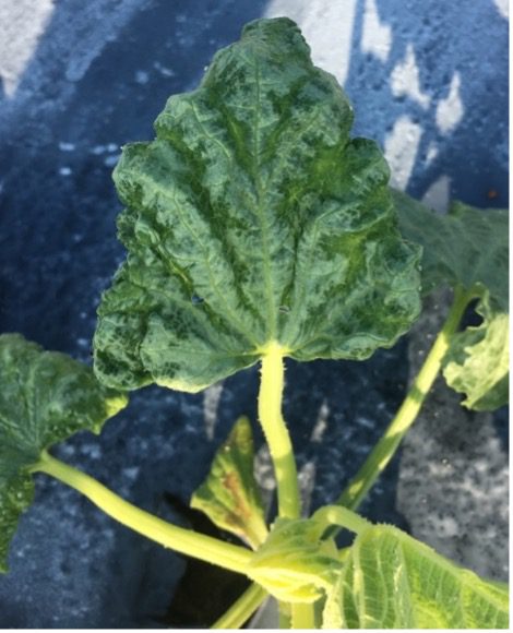 Adult silverleaf whitefly is a small insect covered with a white and waxy layer. It feeds in the abaxial (underside) part of leaves. Whiteflies use piercing-sucking mouthparts to feed on the phloem tissue, which is the plant tissue responsible for nutrients transportation. During feeding, the exchange of fluids causes the transmission of plant viruses. In vegetables, common whitefly-transmitted viruses are Cucurbit leaf crumple virus, Cucurbit yellow stunting disorder virus, Squash vein yellowing virus, Tomato yellow leaf curl virus, and Tomato chlorosis virus. When the viruses are introduced in the growing systems, their transmission is quick and causes great threat to economical production.