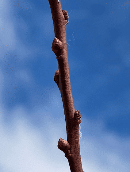 - Figure 1. Dormant rabbiteye blueberry flower (the three larger on the left side of the branch) and leaf (one smaller on the right side) buds.