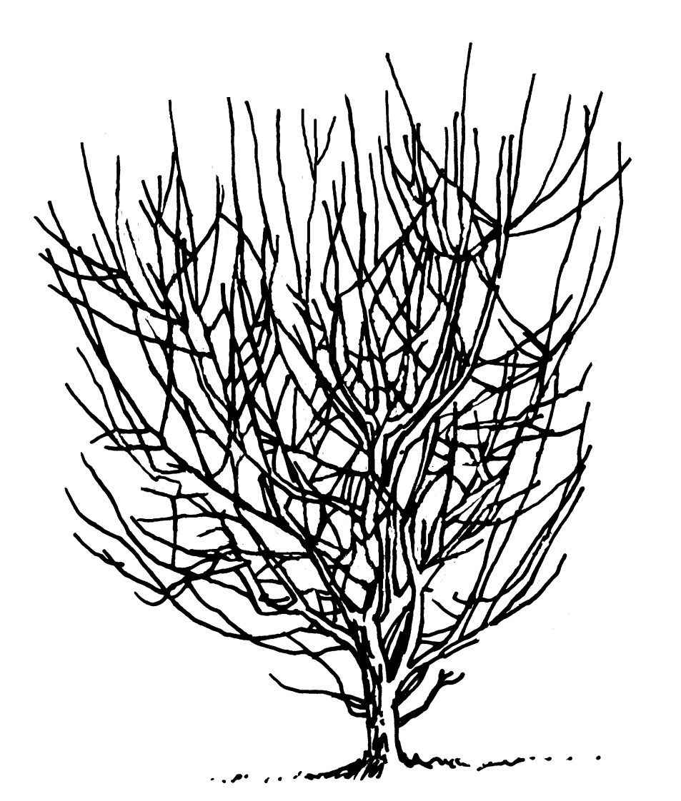 - Figure 9. Same tree pruned. Note open center, heading back of branches, and plenty of fruiting wood.