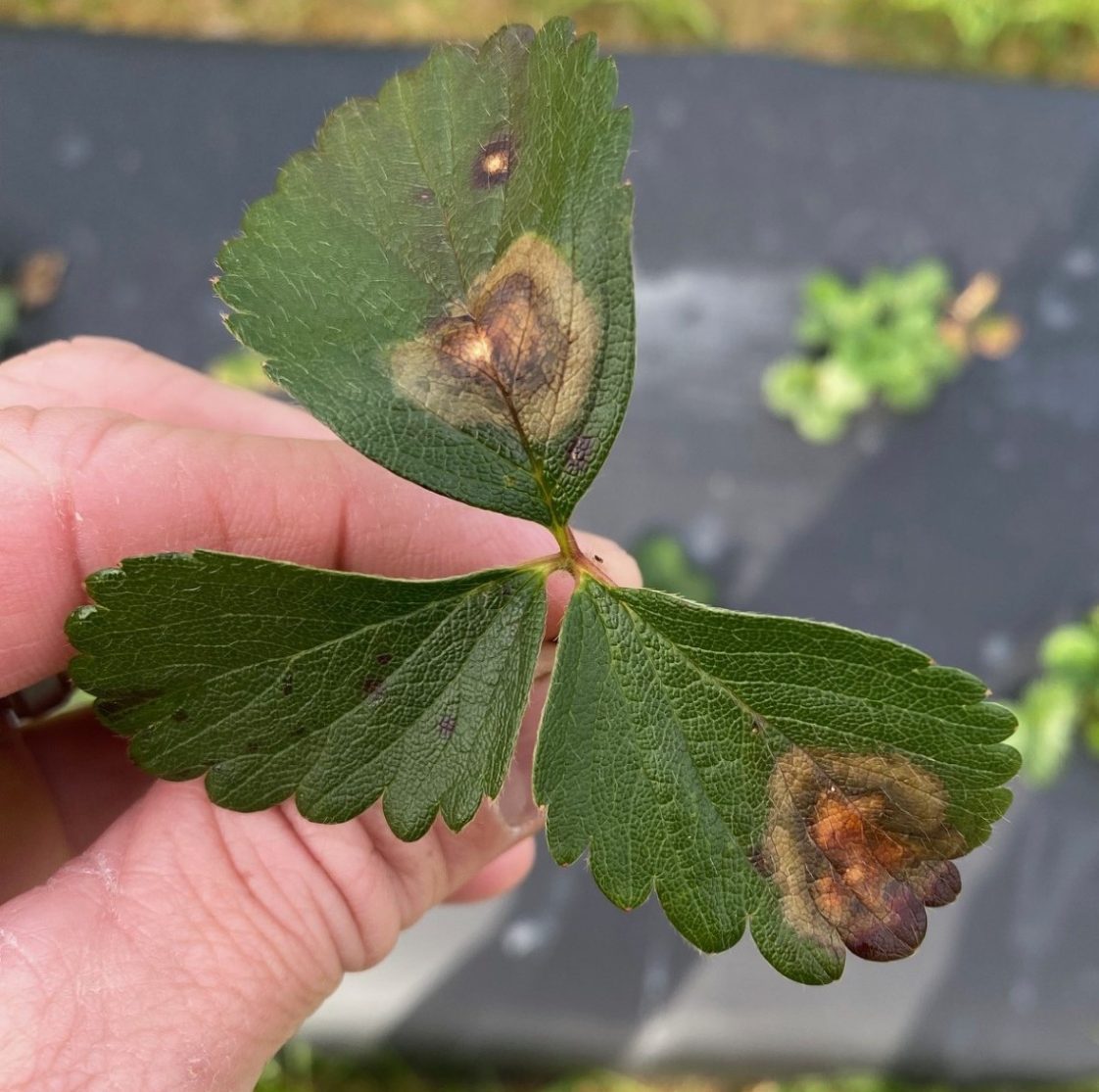 Gnomonia leaf blotch, caused by the fungal pathogen Gnomonia comari, is a disease affecting strawberry plants in the Southeast. This pathogen primarily targets the foliage; however, it has the potential to infect flowers and fruit. In some instances, the leaf blotches can cause defoliation, which can in turn affect fruit yield and quality. Understanding the symptoms, disease cycle, and effective management strategies is essential for maintaining healthy strawberry crops and developing an integrated pest management (IPM) strategy for season-long control.
