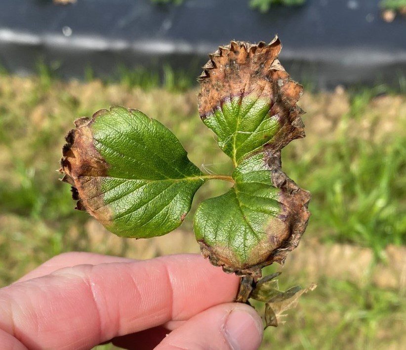 Crop rotation is crucial for reducing disease pressure in strawberry production. This practice will also reduce the incidence of more serious pathogens, such as phytophthora, anthracnose, and nematodes. Growers should also regularly remove and destroy infected leaves and plant debris to reduce the inoculum load in the field.