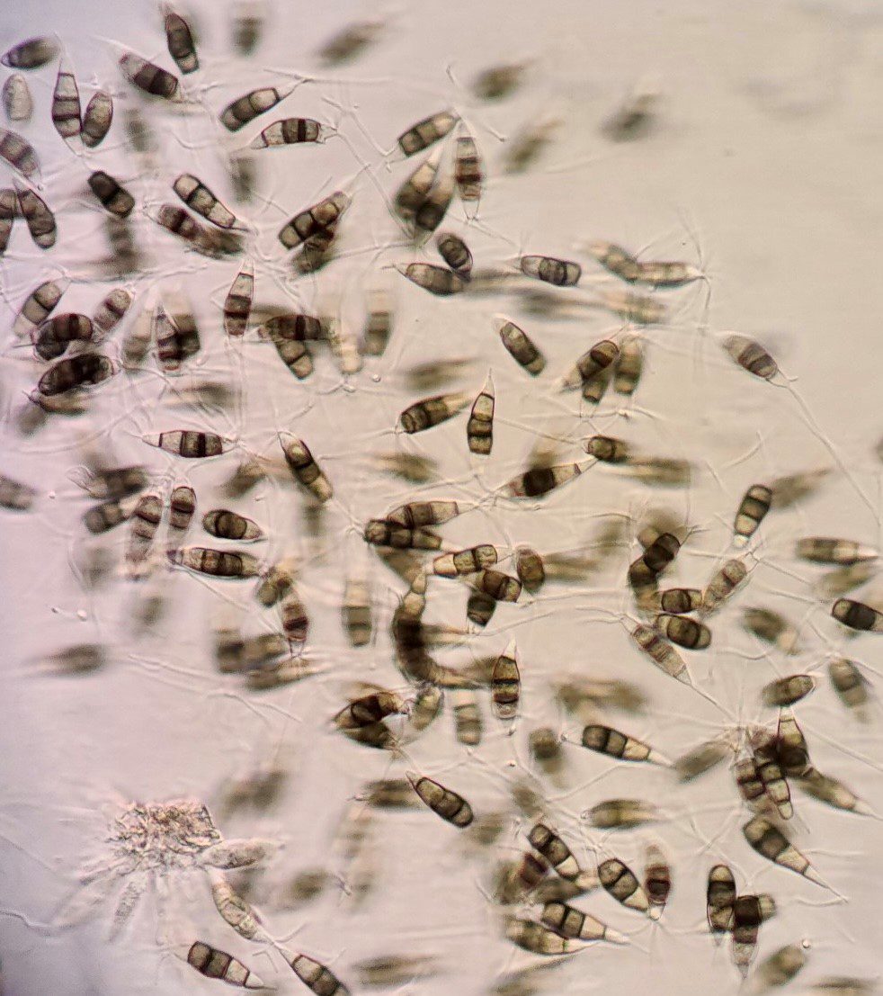 The disease was first observed in Florida in 2019 and has since spread to other Southeastern states. Neopestalotiopsis can cause severe yield loss and has the potential to destroy entire fields. The common link among past outbreaks was the nursery sources from which transplants originated. The pathogen can spread quickly across a planting and to other fields by wind, rain, irrigation, farm equipment, and field workers during harvesting and cleaning operations. Disease development is favored by consecutive or extended rain events and temperatures above 50°F. Leaf wetness plays a major role in disease progress, as dry conditions seem to inhibit or reduce spread of the pathogen.