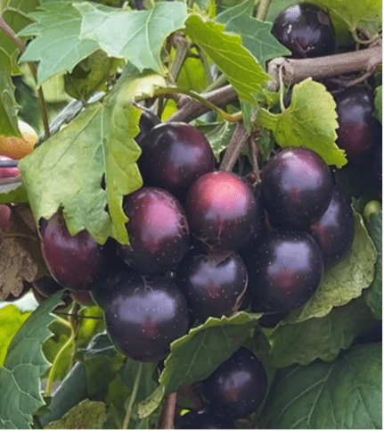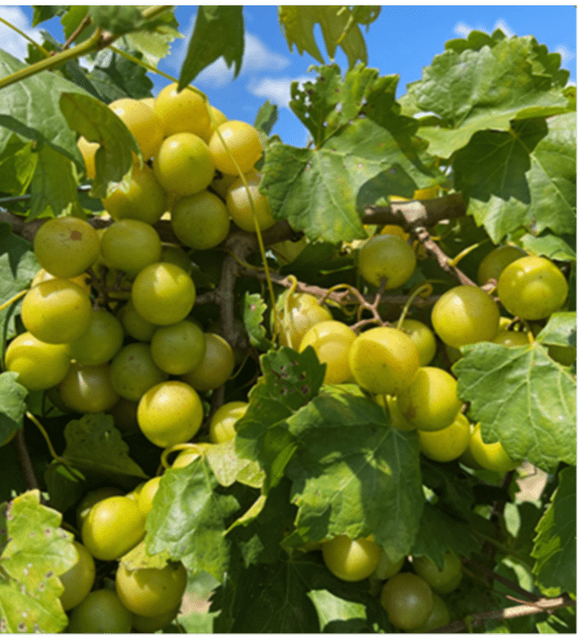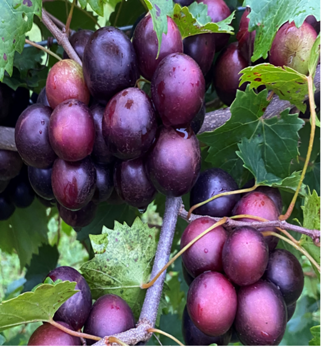 Figure 1. Clusters of ‘Razzmatazz’ seedless muscadine grapes grown in 2023.