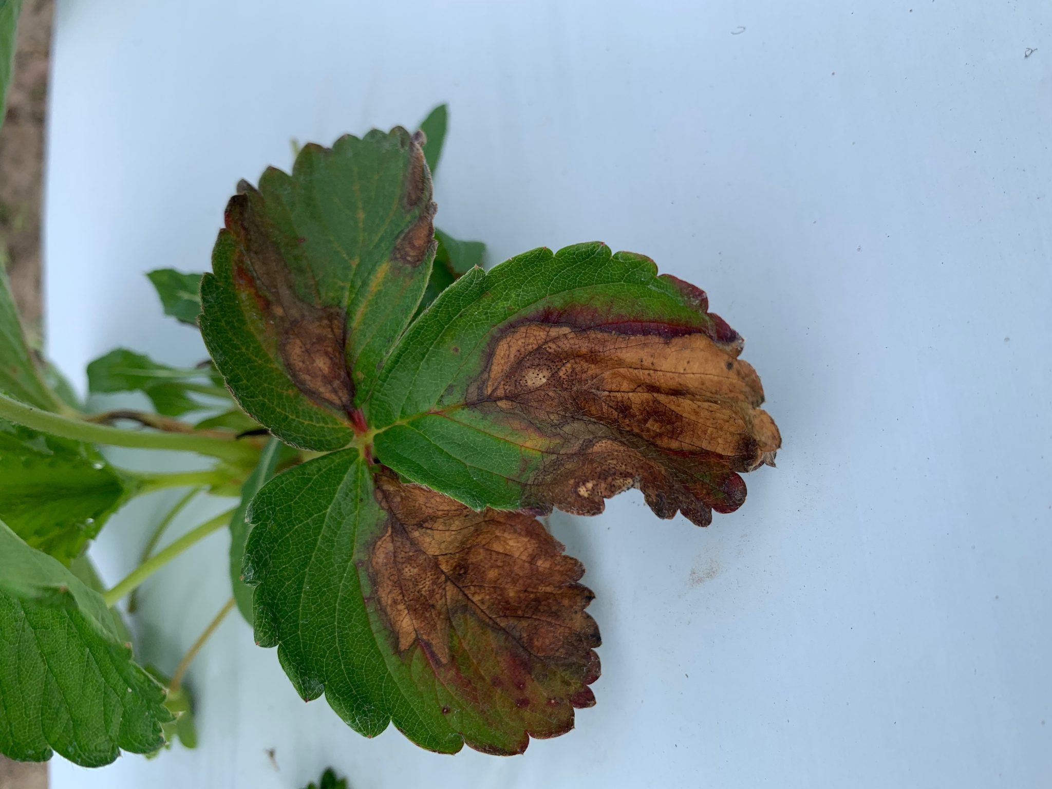 Another disease to look out for in the Southeast is Pestalotia—a leaf spot and fruit rot disease caused by the fungus Neopestalotiopsis sp. Neopestalotiopsis was first observed in Florida 1972 and was considered a secondary pathogen. However, recent outbreaks have been more severe, signifying that a more virulent strain of Neopestalotiopsis has emerged. In Florida, strawberry yield has been reduced considerably over the past few seasons due to this disease. Pestalotia was reported in Georgia for the first time in 2020 where it caused significant damage to the strawberry industry.