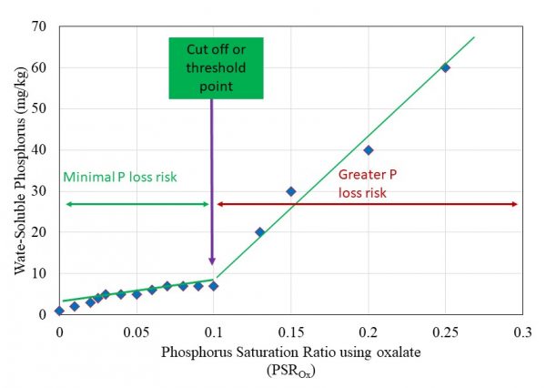 Threshold PSRox: threshold phosphorus saturation ratio derived from water-soluble phosphorus and the phosphorus saturation ratio using oxalate extract (figure 1) for a population of soils from the same geographic region and textural properties