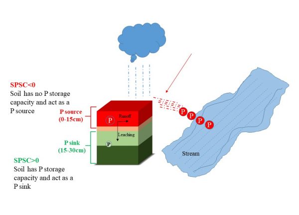 Soil phosphorus storage capacity can be either greater than zero or less than zero. When soil phosphorus storage capacity is greater than zero (positive values), it means the soil has additional capacity to retain phosphorus, hence it will act as a phosphorus sink and will not be susceptible to phosphorus loss risk. However, when soil phosphorus storage capacity is less than zero (negative values), it means that the soil has no additional capacity to retain phosphorus and will act as a potential phosphorus source (figure 2).