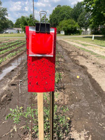 - Figure 3. Trécé Pherocon broad spectrum attractant installed together with red double sticky traps purchased from Trece Inc. in Adair, Oklahoma.
