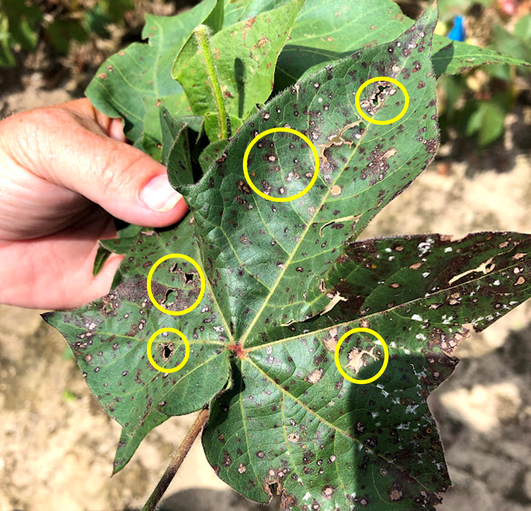 Yield losses can be high in Stemphylium-infected cotton; however, plant stress factors such as nutrient deficiencies, drought, and pest pressure also contribute to yield losses.
