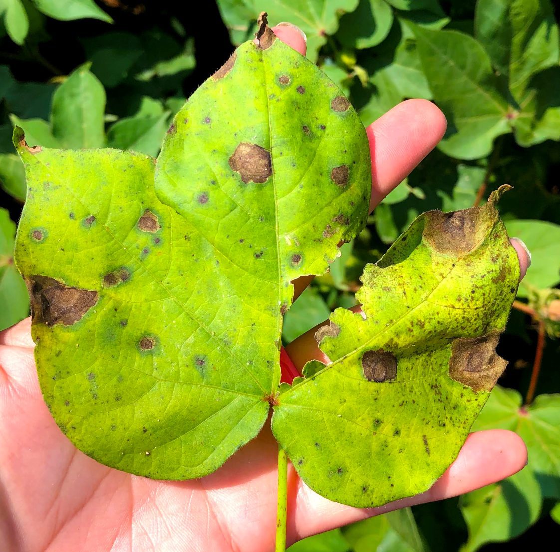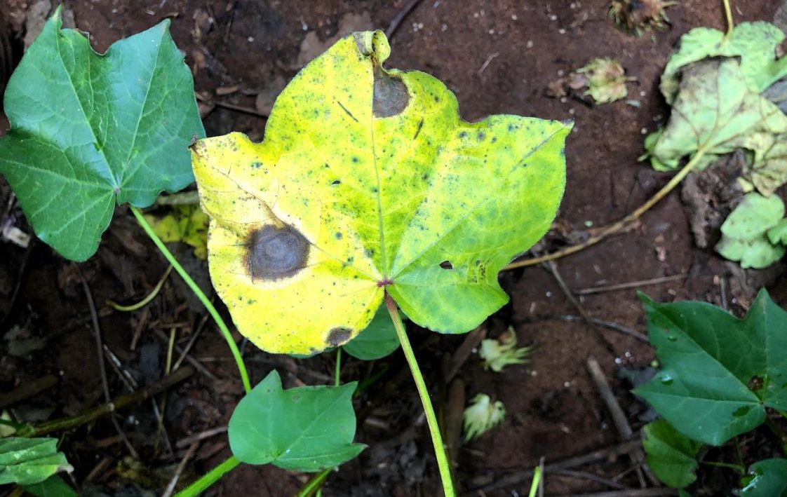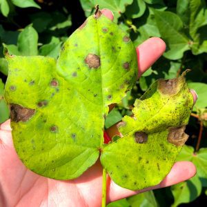 Target spot, also known as Corynespora leaf spot, is an emerging cotton disease in the southeastern United States. It is caused by the necrotrophic fungal pathogen Corynespora cassiicola, which has a wide host range of more than 300 plant species, including cotton, soybeans, numerous vegetable and fruit crops, and ornamentals.