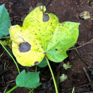 - Figure 2. Infected cotton leaf with target spot turning yellow in color.