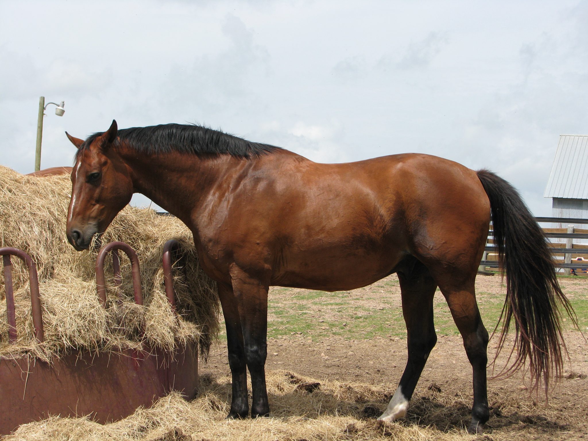 Another important consideration is that the 9.5 kg of hay you are feeding the horse each day represents approximately 1.9 percent of the horse’s body weight. If you were feeding this poorer-quality hay to a horse with higher requirements than a pleasure horse, say a pregnant or lactating mare, the increase in concentrate feed needed to meet the horse’s requirements might result in hay consumption dropping below the daily minimum amount of 1 percent of the horse’s body weight in long roughage. This could increase digestive problems in the horse and may lead to behavioral problems such as wood chewing or tail chewing.