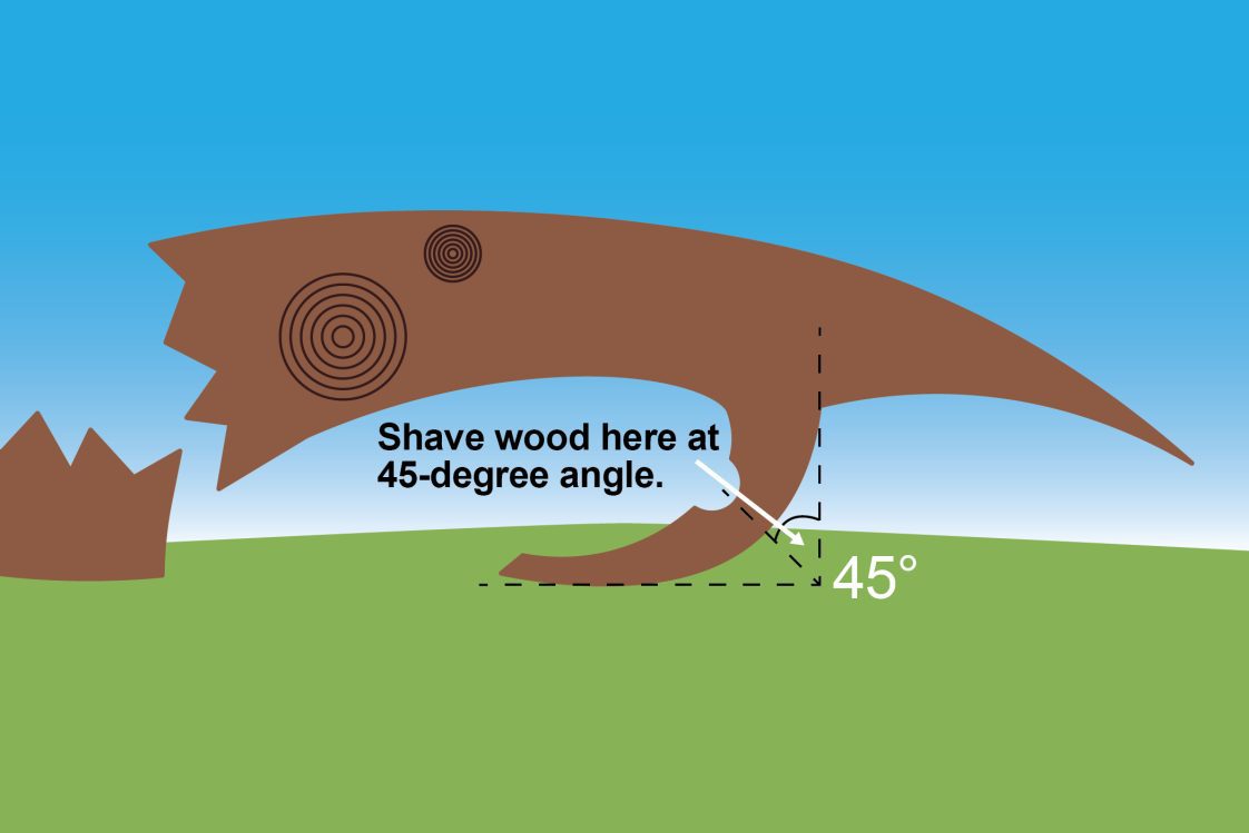 - Cutting straight into the compression wood will cause the saw kerf to close and pinch the saw. Instead, shave it lightly along the grain with the chainsaw. You want to gradually shave away the tightly compressed wood.