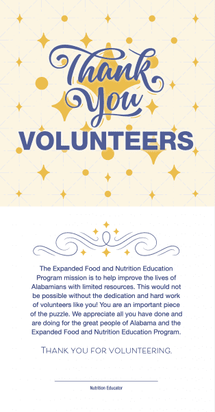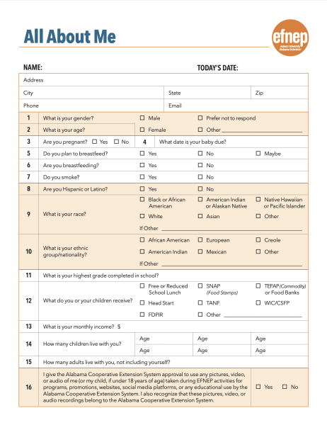 Contact your local Extension office for more information. Follow Alabama EFNEP on Facebook. Text EFNEP to 555888 to receive nutrition tips. Message and Data rates may apply.