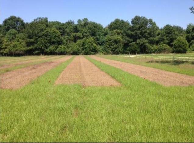 During late spring, close grazing or mowing to remove residual cool-season annuals should be conducted to guarantee proper bahiagrass regrowth, since late- season species, such as annual ryegrass, could delay bahiagrass regrowth. A growing practice in southern Alabama is to strip-plant rhizoma peanuts to improve nutritive value and animal performance and decrease nitrogen input (figure 7).