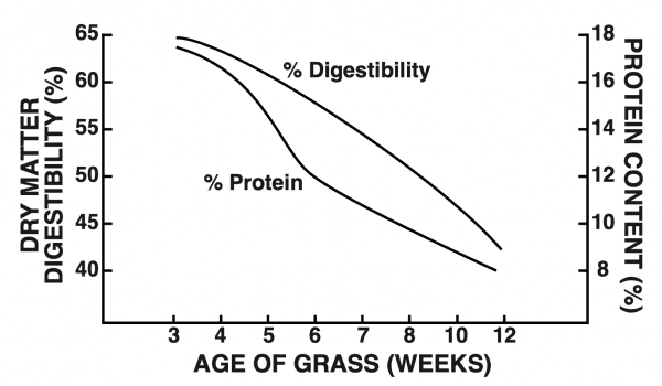 Figure 1. Quality of Coastal bermudagrass as influenced by age of accumulated growth since previous harvest.