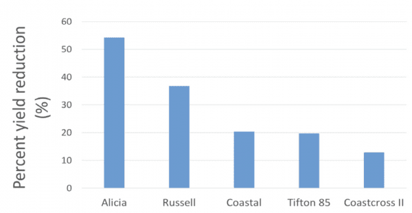 Figure 2. Bermudagrass stem maggot yield reduction. Adapted from Baxter, 2017.