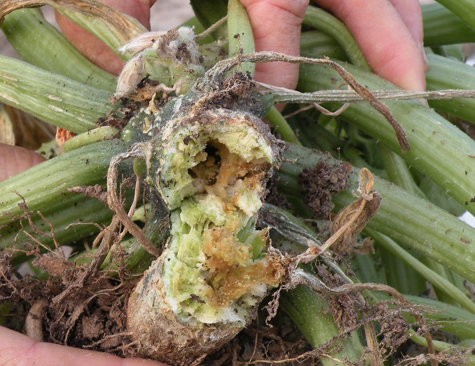 | Larval identification | The eggs hatch into creamish larvae that quickly bore into the hollow stem (Fig. 2) and makes the plant its home. Larva spends its entire time inside the stem protected from insecticide applications; it only emerges to pupate in the soil near the plant. | Only young instar larvae have series of black spots on greenish body (Fig. 5); mature larvae do not have spots and may become dark colored. Larvae bore into the reproductive structures creating holes (Fig. 6). | Larvae are colorless when small, but the late instar larvae have two white lines on top over a green body (Fig. 10). |