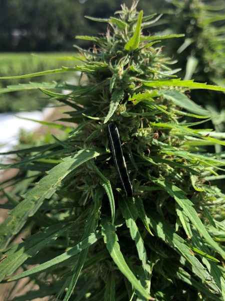 Being proactive is crucial for managing corn earworms in hemp. Regularly scout your plants as soon as flowering begins. Carefully examine several plants in multiple parts of the field. Young larvae are very small and often go unnoticed, especially in hemp buds. Look for caterpillars or evidence that they were there. It is often easier to detect a caterpillar infestation in hemp by first finding their frass as an indication of a problem.