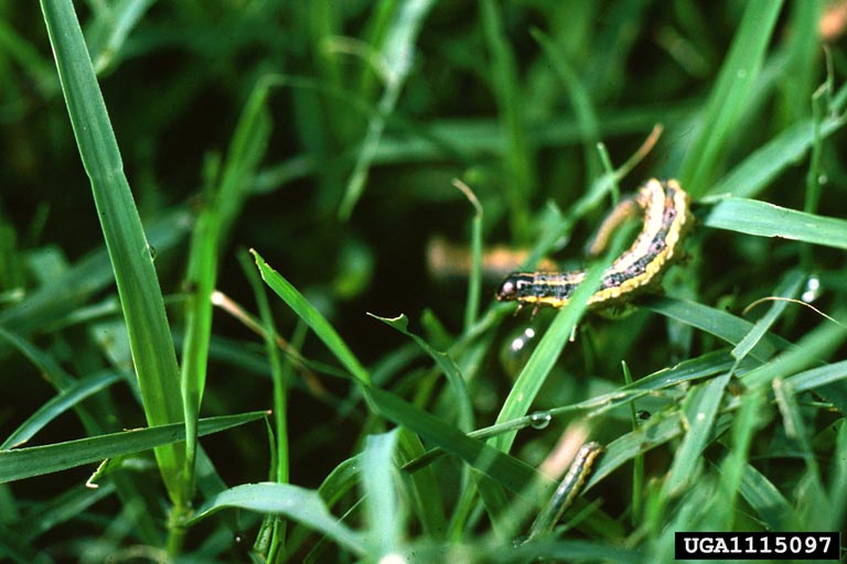 | Diflubenzuron | Dimilin 2L | Ingestion of treated material; dies after unsuccessful molt | Medium | Grazing: not specified Harvest: 1 day | Only works on small, less than 1-inch worms; may take a few days to see results |